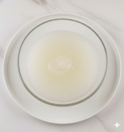 찹쌀가루 200g을 찬물 500ml에 풀고 덩어리가 없도록 저은 뒤, 육수 1L를 넣어 중불에서 10분간 끓입니다. 걸쭉해지면 불을 끄고 완전히 식힙니다.